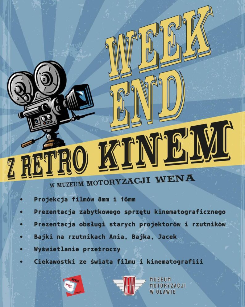 Już w najbliższy weekend, 8 i 9 listopada 2025 roku, zapraszamy do Muzeum Motoryzacji Wena w Oławie na wyjątkowe wydarzenie Weekend z Retro Kinem. To będzie prawdziwa podróż w czasie, podczas której pokażemy, jak wyglądało kino w czasach PRL i jaką magię miały dawne seanse filmowe.